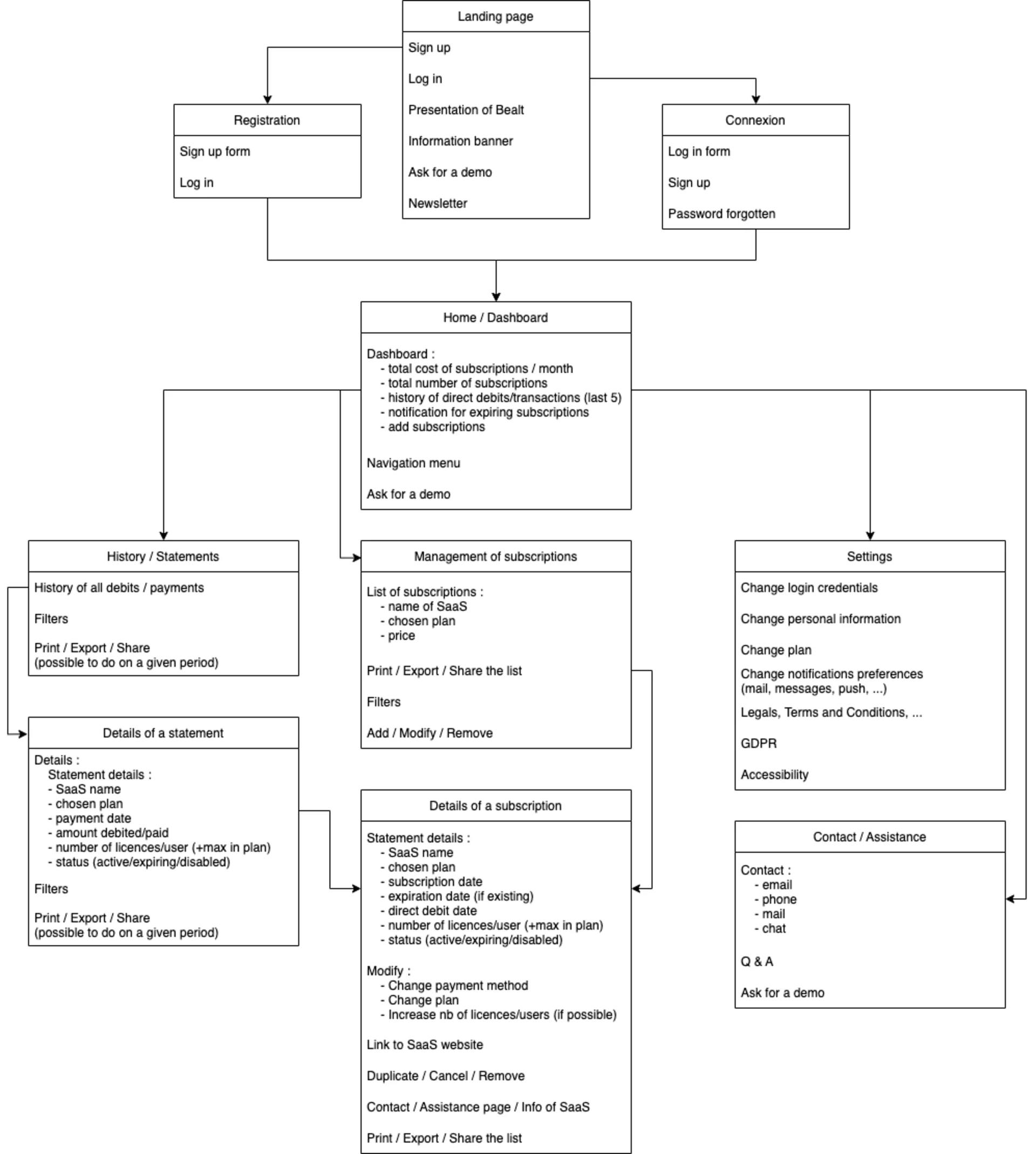 Companies and more particularly startups and fast-growing SMEs subscribe to many services requiring recurring payment, or buy many renewing licenses, for different platforms/software such as Notion, Salesforce, Miro, Slack or many others that serve several different purposes. Within our companies, we realized that sometimes certain services are not really used or that several services are in fact used to perform the same tasks. It's on the basis of this observation that we understood that companies sometimes lack visibility concerning the various services they use and to which they subscribe.