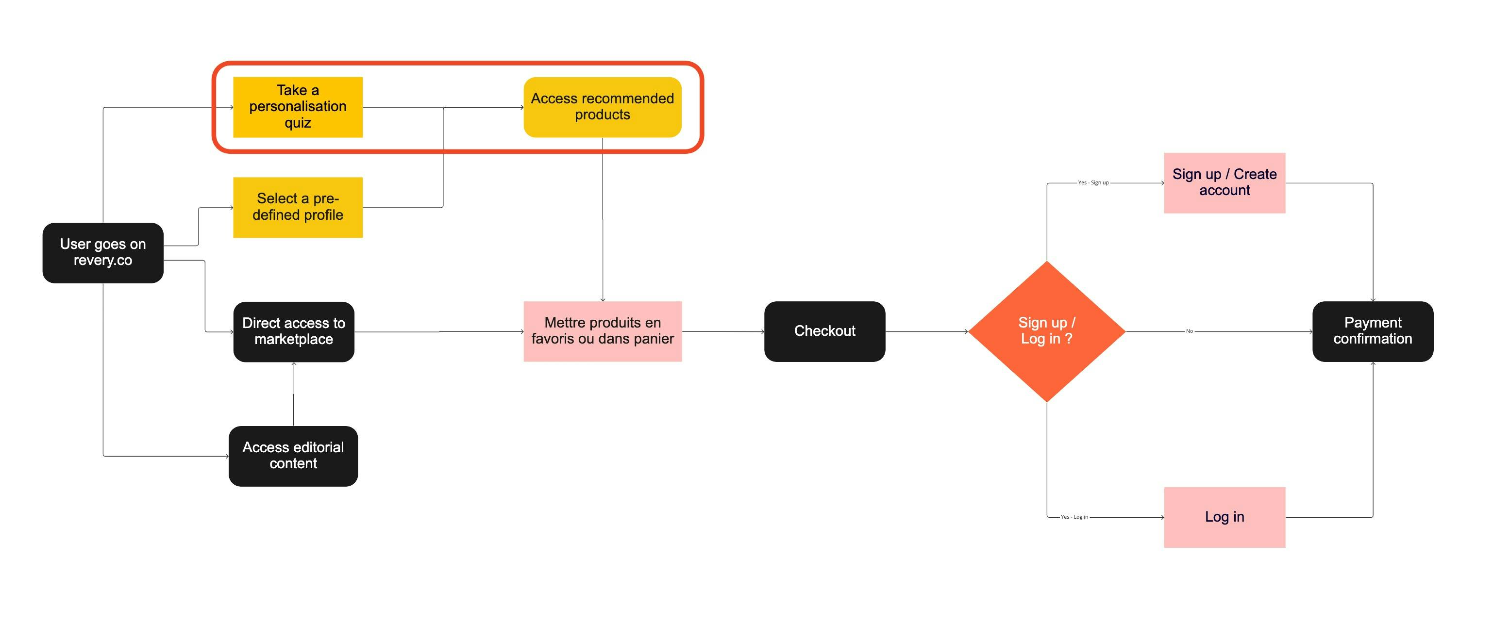 We started by creating a user flow, in order to map the experience that Revery could offer its customers.