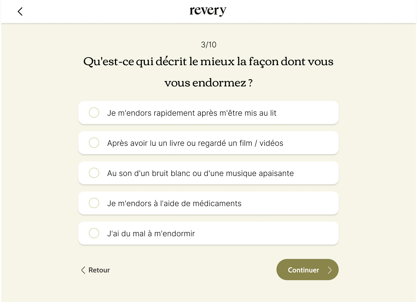 It is based, quite simply, on a system of questions concerning users' sleep habits, needs, and objectives, in order to offer the right products.